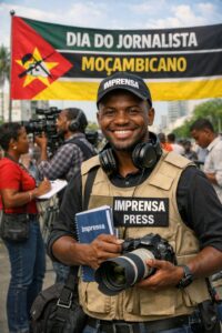 A Bancada Parlamentar da FRELIMO saúda, com elevado respeito e consideração, todos os jornalistas moçambicanos que, com coragem, ética e sentido de missão, dão voz ao povo, informam a nação